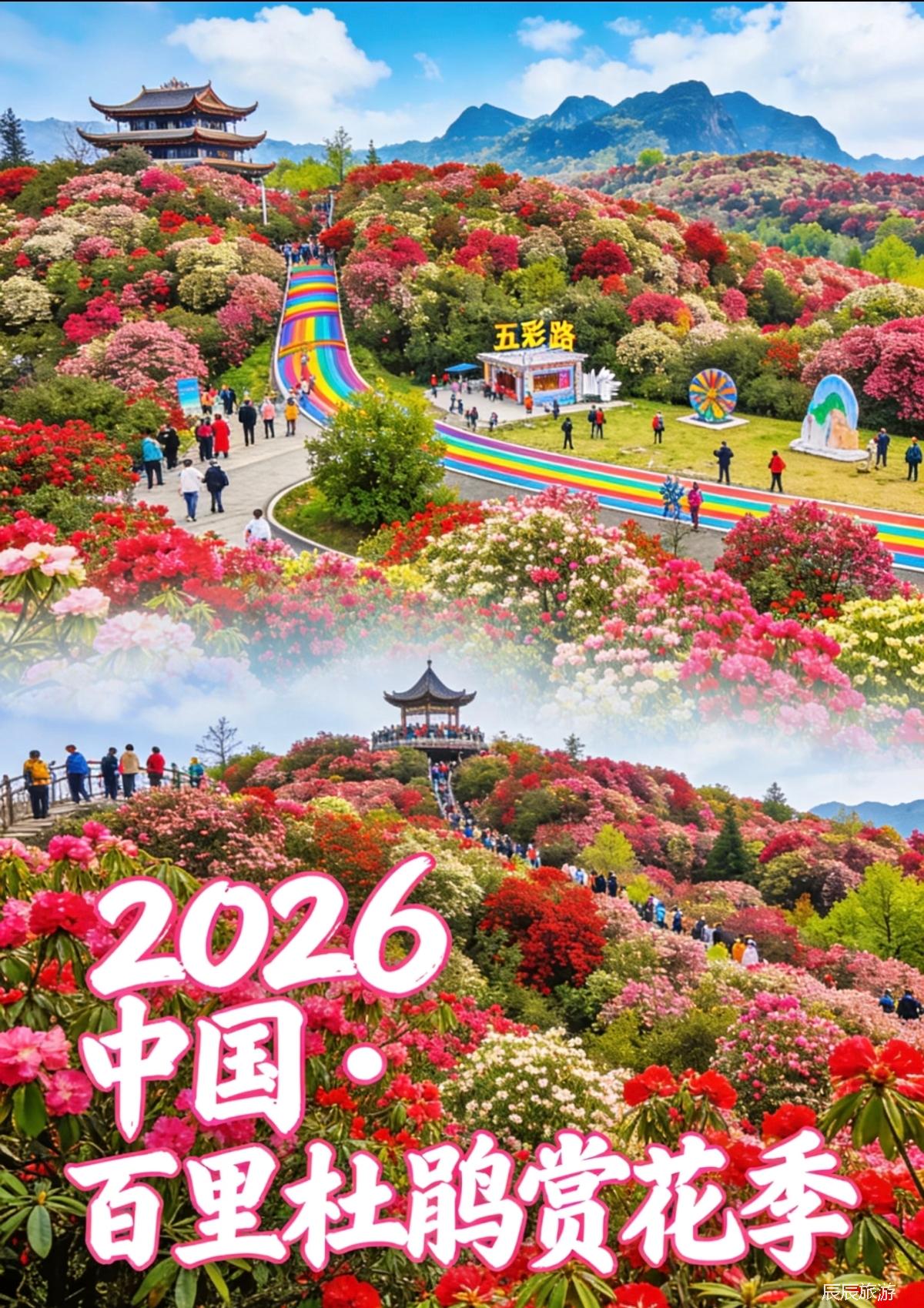 你会被漫山遍野的的杜鹃花的浪漫包围:像是被上帝打翻五颜六色的调色盘: